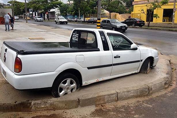 يک ماشين در پيادهرو نزديک نمايندگي براي فروش گذاشته شده بود ، فروشنده ماشين گفت اين يک چيز طبيعي است و اين کار 20 سال است که براي نمايش ماشين اتفاق ميافتد. به گفته رسانههاي محلي پارک ماشين در پياده رو از نظر فني کاري غير قانوني نيست ولي کارگران نميتوانستند به خاطر اين ماشين کارشان را در پياده رو به اتمام برسانند. آنها از فروشنده ماشين خواستند که ماشين را جابهجا کند ولي او نپذيرفت و در نهايت انها مجبور به چسباندن ماشين به زمين با استفاده از سيمان شدند. مسئولان بعد از شکايات محليها براي پارک ماشين براي برداشتن آن به آنجا رفتند ولي ديدند که اين ماشين با سيمان به پيادهرو چسبيده است.